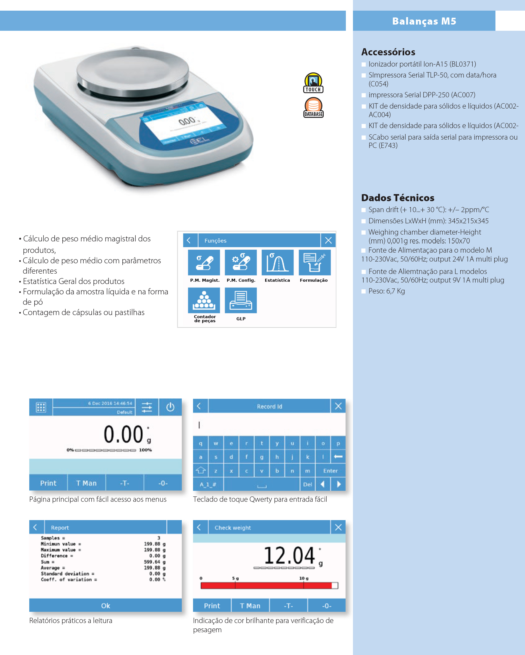 Novas Balanças M5 Touch-Screen com processador estatístico interno